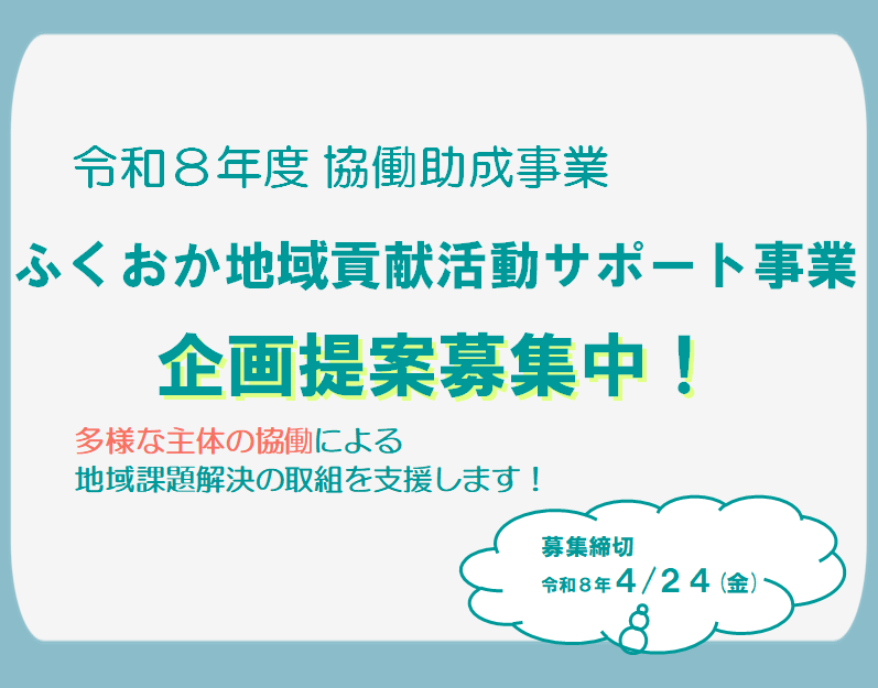 【4/24(金)募集締切】令和8年度ふくおか地域貢献活動サポート事業の企画案を募集します!NEW