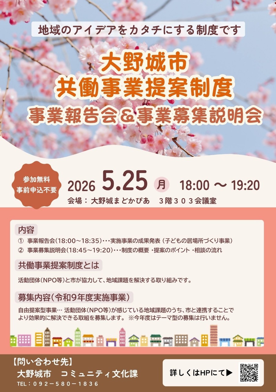 大野城市共働事業提案制度 事業報告会・事業募集説明会を開催します