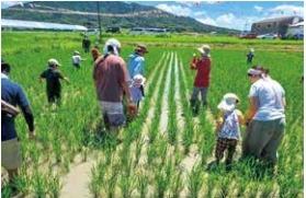 福岡市及び筑紫地区の学校や児童養護施設、幼稚園等に呼びかけ、有機栽培の田んぼで草取り、稲刈り、脱穀、収穫まで行う稲作農業体験を実施。あわせて、自然豊かな場所で共食を行い、食への感謝の気持ちを醸成するとともに、親子や友人間の交流を図った。